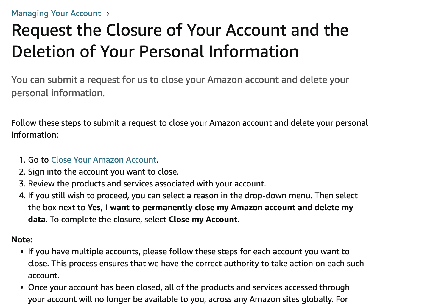 3. 여기서 1번에 파란 글자로 적혀진 Close your Amazon Account.를 클릭