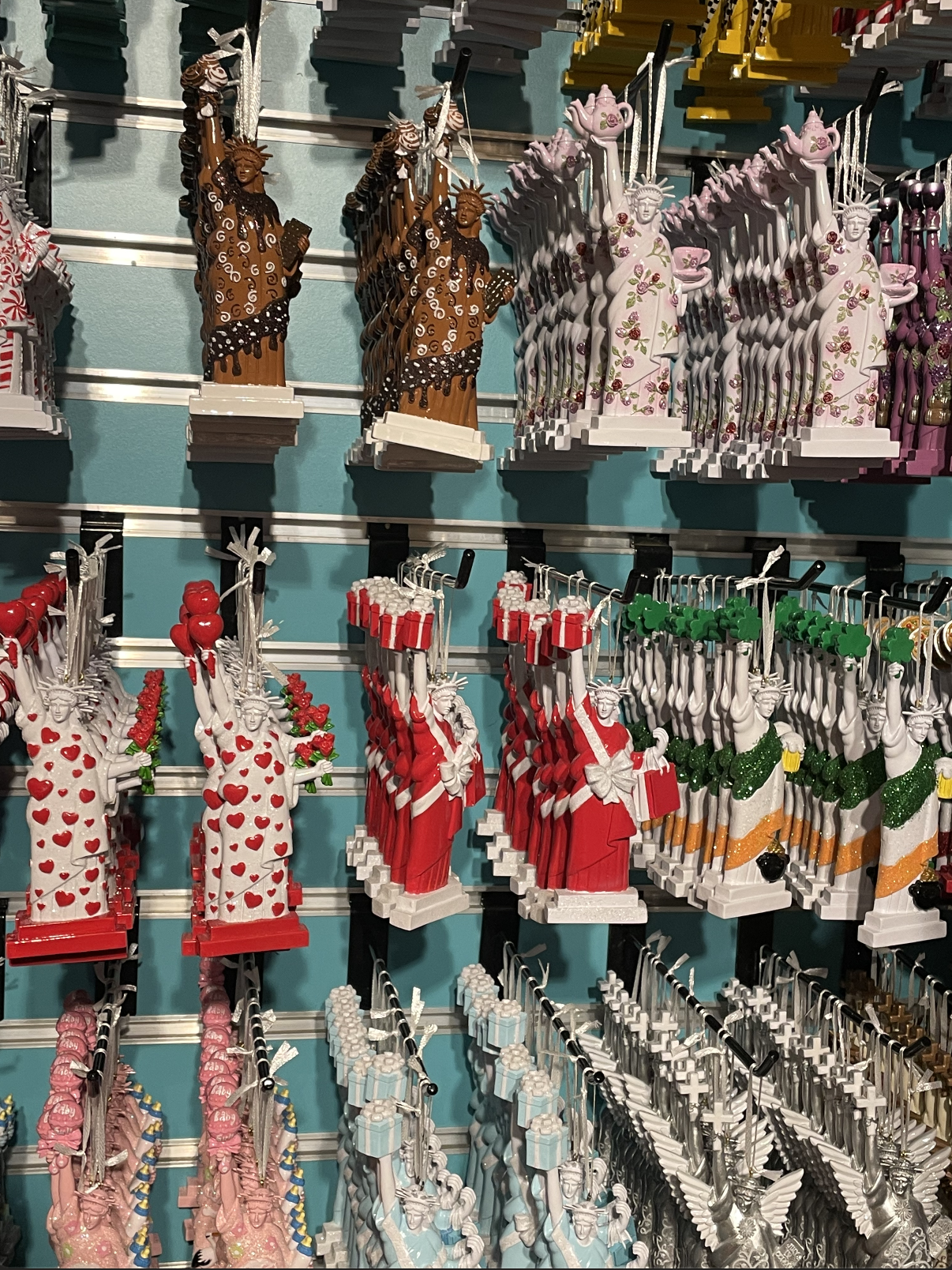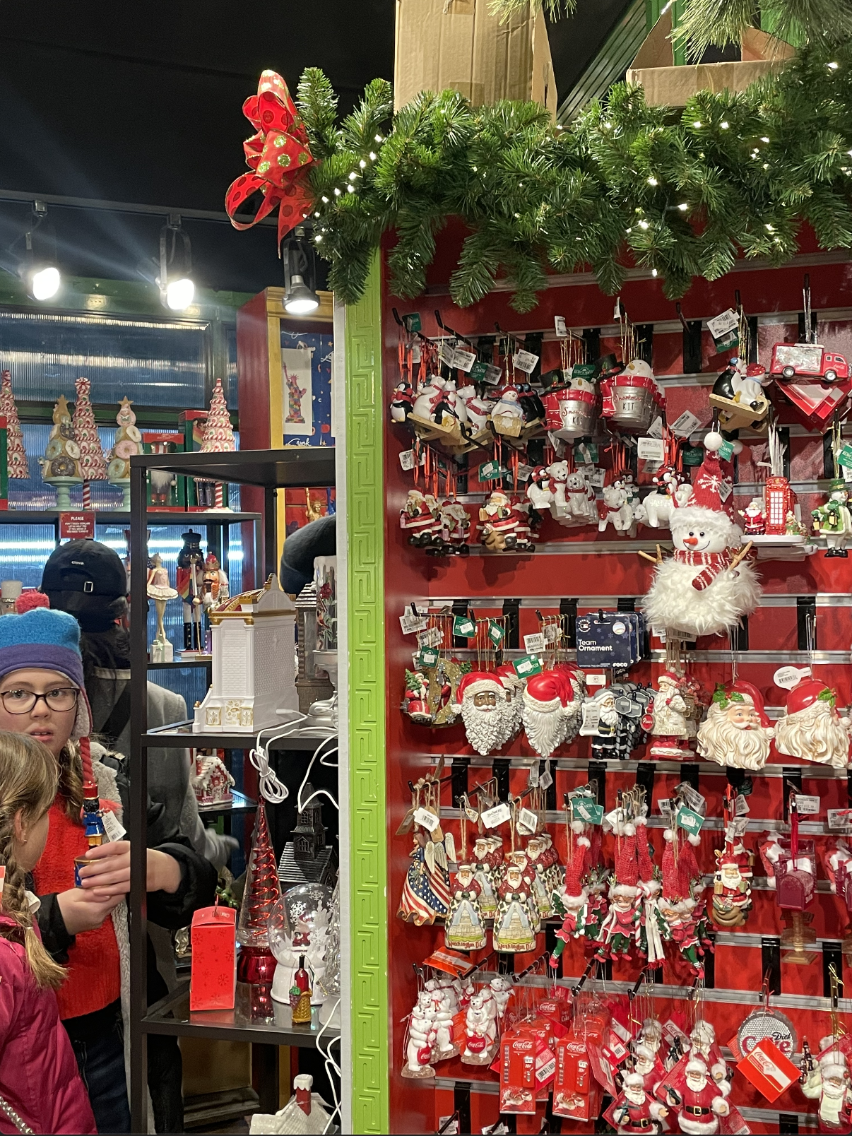 크리스마스 기념품, 오너먼트 같은 것들을 팔고 있다.