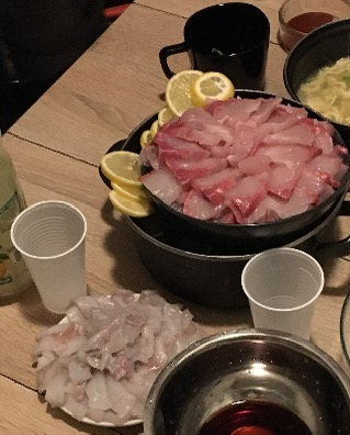 우린 집으로 돌아와 손질하여 회를 먹었다